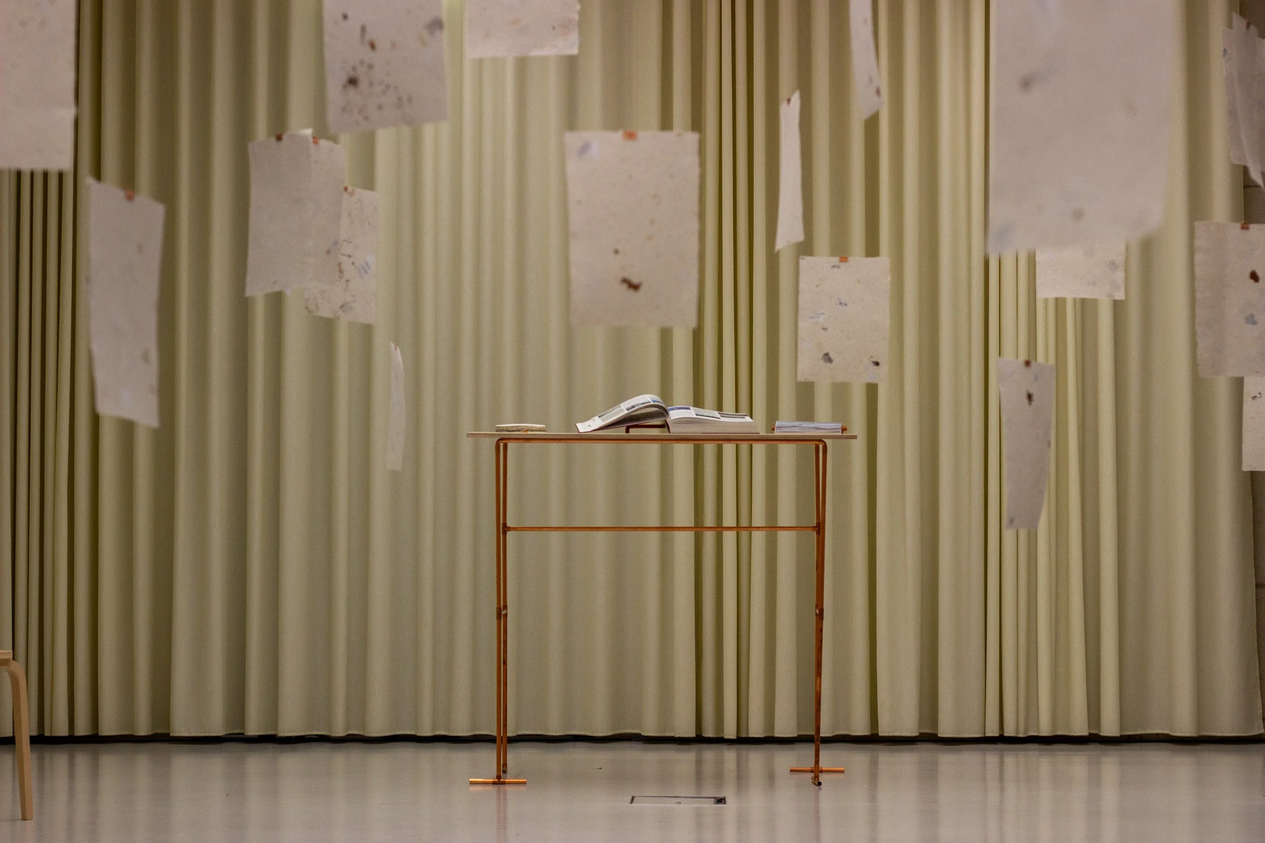 Materials: Paper from organic materials from the mine, Copper, Birch Wood, Postcards, Poetry